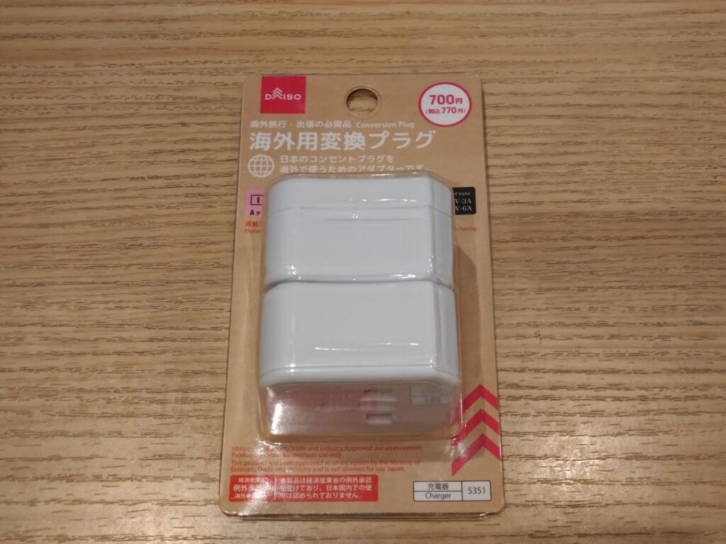ただし電圧が220V~240Vと日本より高く、コンセントによっては変圧器が必要になります。スマホの充電器などは幅広い電圧に対応していて、別途変圧器が不要なこともあるので事前に確認してみてください。ダイソーにはありませんでしたが(2026年1月時点)、変圧器と変換プラグがセットになっているものもAmazonや家電量販店には販売されています。