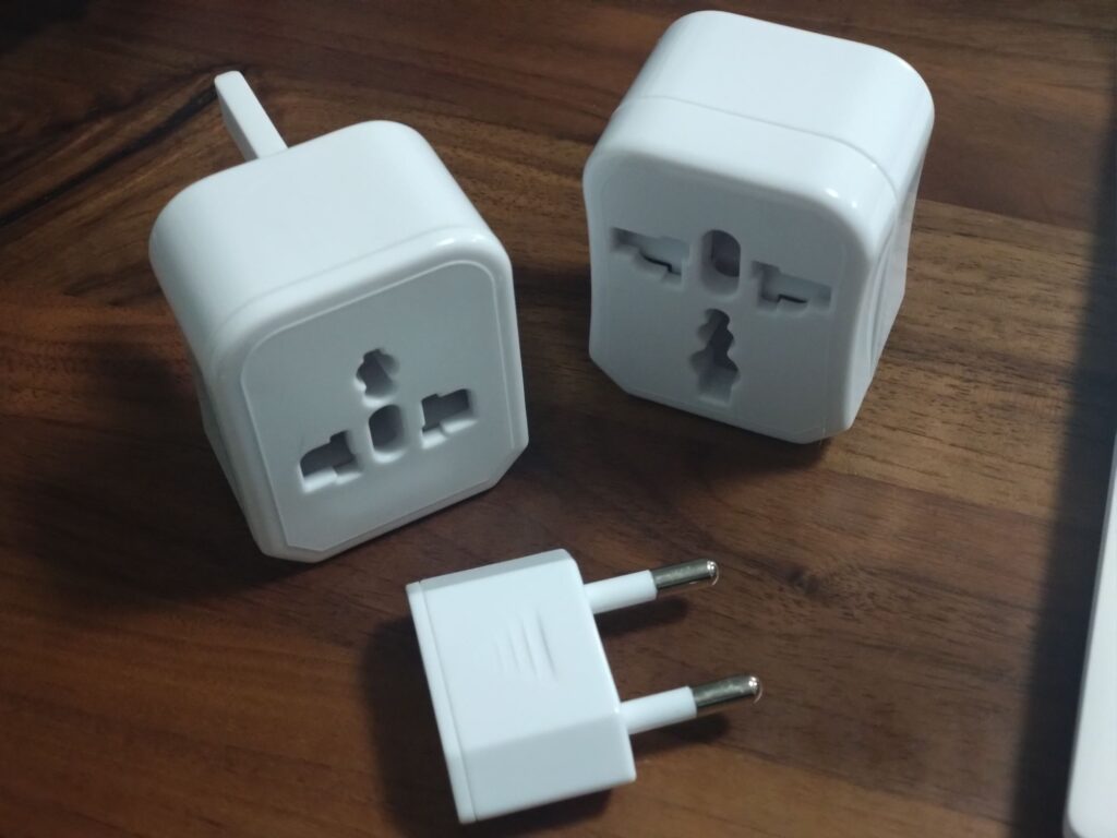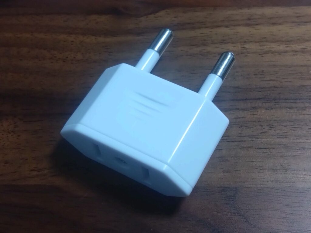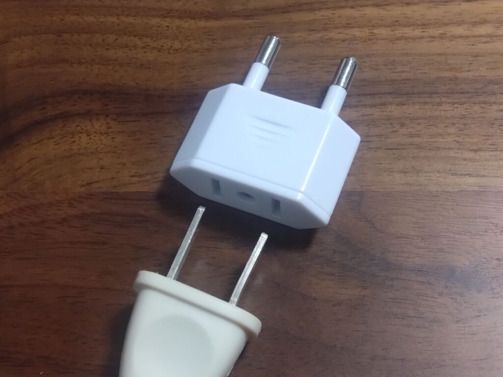 使い方は日本から持ってきたコンセントを変換器の平らな面に差し込み、反対側をプラグに差し込めばOKです。