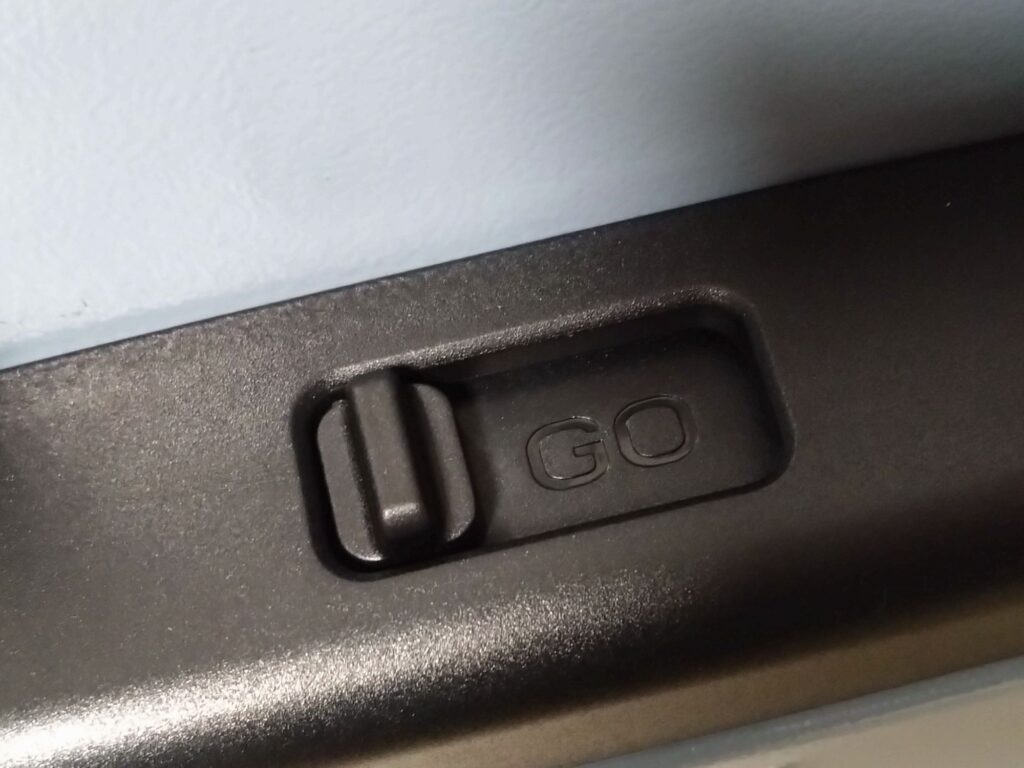 購入を検討しているときには重視していなかった「タイヤロック」。これはとても役立ちました!特に助かったのは電車の中。重たい荷物が入ったスーツケースは、電車の傾きや出発・停車とともにすべってしまいます。この「ロック」を使うとピタッと止まってくれて手が空きます。スーツケースを抑えるのって地味に体力を使っていたことを実感し、ありがたい機能でした。